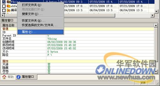 如要查看该删除文件详细信息,选定该文件后点击鼠标右键,在右键菜单属性栏中可以看到该文件的详细信息,如下图所示: